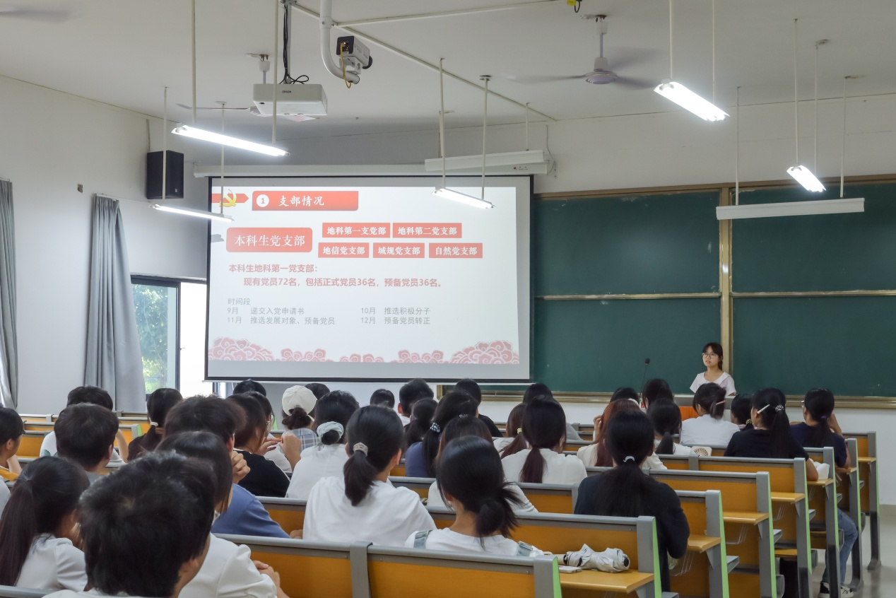 会议伊始,罗慧敏同志系统阐述了党的性质、宗旨、指导思想和奋斗目标。接着,她对学院党支部情况进行了简单介绍,强调了入党的几个大时间段,并对本科生地科第一党支部的风采照片进行展示。随后,罗慧敏同志从“申请入党”“入党积极分子的确定和培养教育”“发展对象的确定和考察”“预备党员的接收”“预备党员的教育、考察和转正”这五个阶段进行了讲解,其中特别强调了入党申请书的规范写法、思想汇报的重要性以及政治审查的严肃性,为有志入党的同学提供了清晰、明确的行动指南。最后,梁浩源老师对会议进行总结,他指出全体新生要以此次启蒙教育为新的起点,认真思考人生方向,将爱国之情、强国之志、报国之行自觉融入日常学习和生活中,积极学习党的理论知识,主动向党组织进行思想汇报,以党员的标准严格要求自己,争取早日成为一名合格的共产党员。