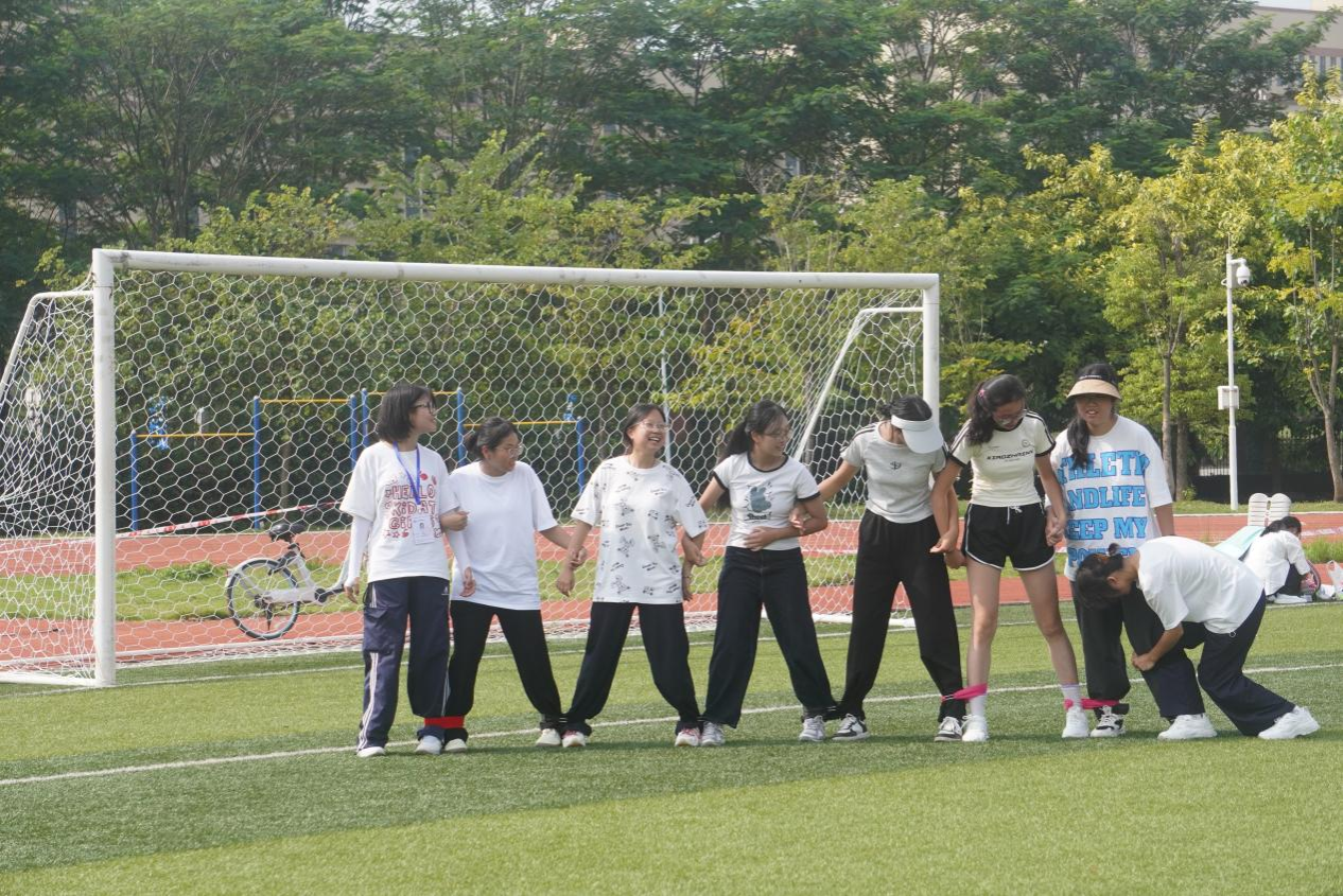 运动场上热烈非凡。短跑运动员奋力冲刺;长跑运动员比拼耐力与意志,不断突破自我;接力运动员们,配合默契,每一棒都传递着信任与力量。在背篓绣球活动现场,同学们双手紧握绣球,目光紧紧锁定远处的背篓,反复调整着投掷的角度和力度,在“八人九足”趣味赛中,大家团结一心维护平衡,互相鼓励,展现出超强的集体荣誉感和团队精神。