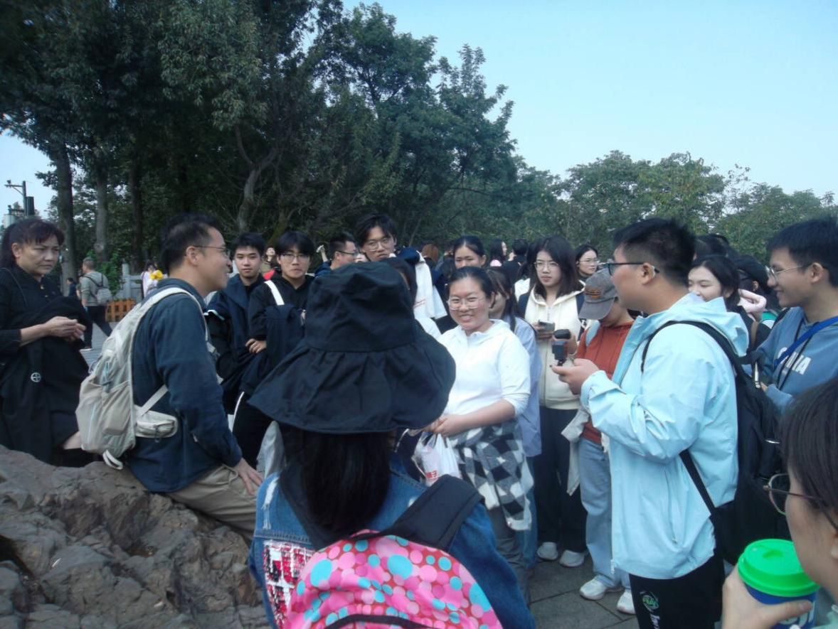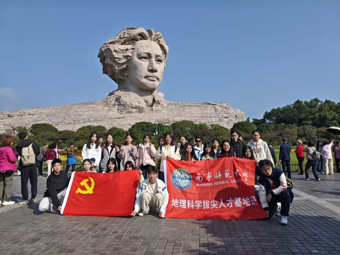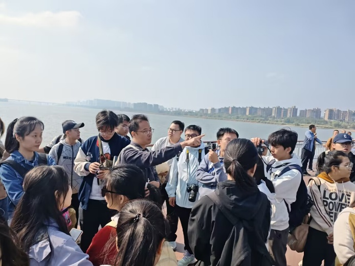 实习途中,处处皆课堂,步步皆收获。首站驻足橘子洲头,在秋日暖阳下聆听老师讲解其独特的形成原理,在江风轻拂远眺岳麓山,让我们在实地触摸山河肌理时,读懂“敢为天下先”的精神不是书本里的文字,而是先辈们踏过的足迹、闯过的新路。当自然地貌的演变与先辈精神的传承在此交融,我们真切感受到:脚下的土地不仅是地理研究的样本,更是承载着精神火种的“根脉”。