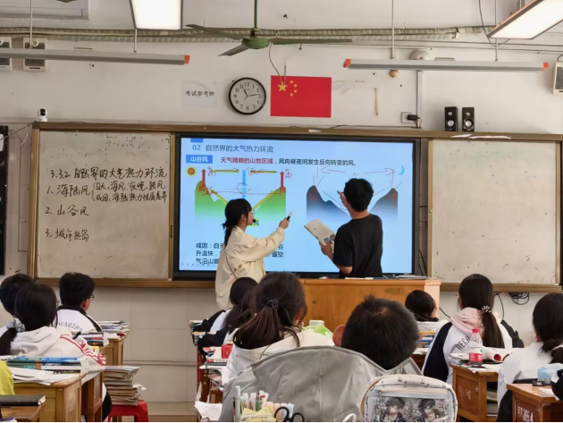 经过两周的听课与备课准备,实习生们迎来了“实战考验”——独立站上讲台授课。从《地球的演化史》到《大气受热过程》等课程内容,实习生们将所学理论与备课成果融入课堂,用青涩却真诚的教学态度,为学生们带来了一堂堂生动的地理课。