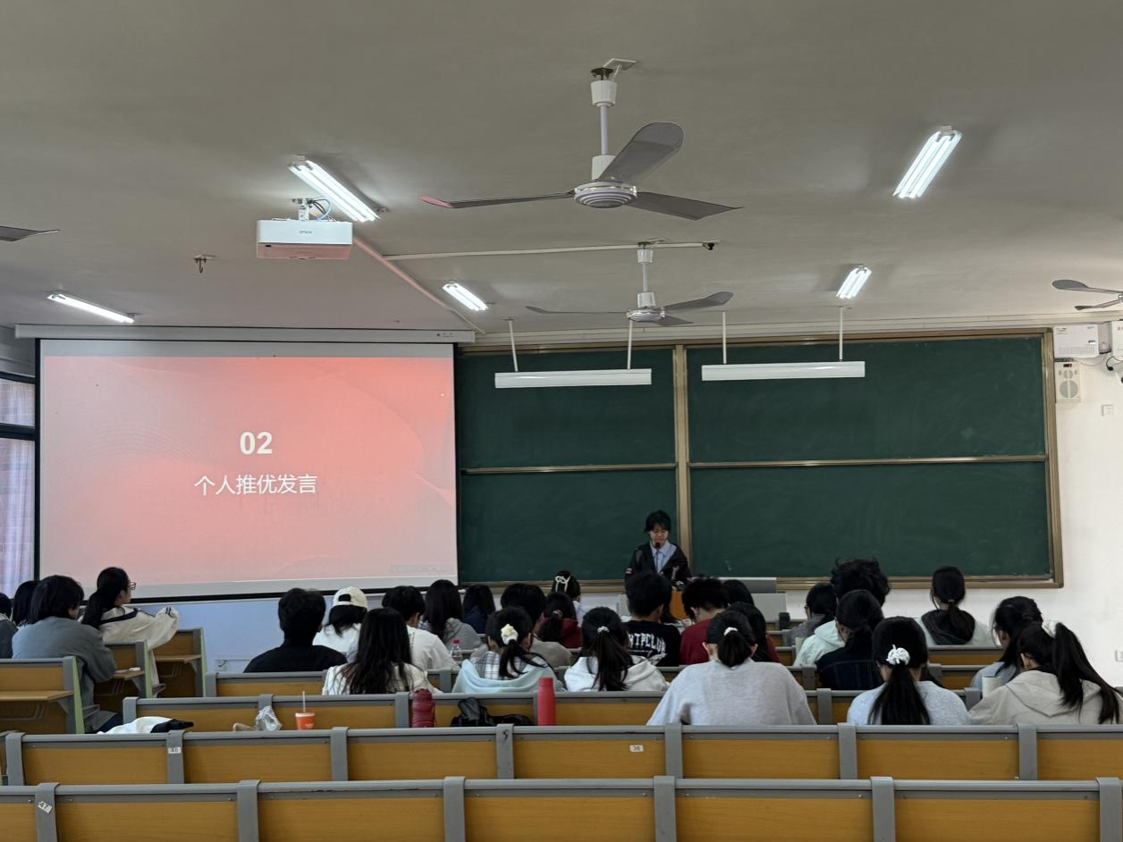 会议伊始,陈泽影同志宣读会议流程,并对入团推优的具体流程、推选标准和投票规则进行了细致的介绍。随后,候选人轮流登台,围绕自身对党的认识、入党动机、思想动态等,进行了全面且深刻的汇报。全班同学认真听取候选人的发言并进行评价和民主投票,投票严格遵循程序进行。投票结束后,计票人与监票人各司其职,认真统票并对投票情况进行核实,有效地保证了此次推优结果的公平公正。