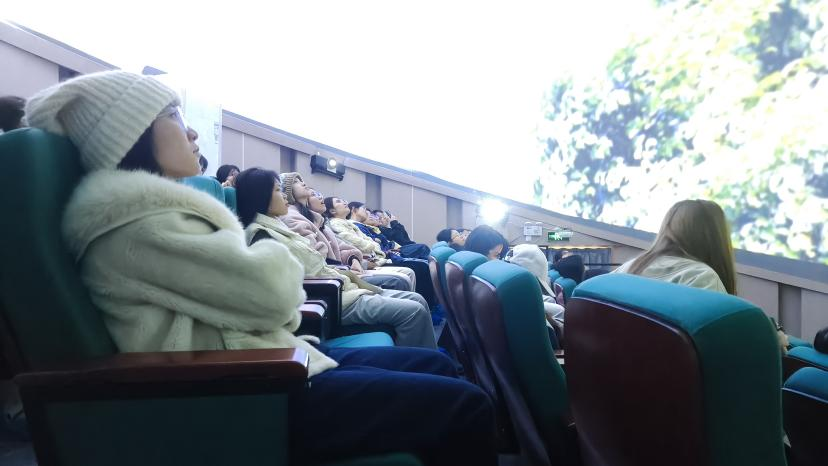 活动伊始,在工作人员的有序引导下,同学们来到地质标本室,通过直观观察岩石构造、亲手触摸演示标本,真切感受地质作用的神奇力量。讲解员还结合标本特征,耐心讲解化石的形成过程,帮助同学们初步了解各类岩石的特性。紧接着,同学们走进霞客园,感悟徐霞客的探险精神与陶行知的教育理念。随后,同学们在自然资源馆中了解到广西丰富的自然资源及其对经济发展、日常生活的重要影响。最后,同学们前往圆顶天文馆观看科普影片,从而激发大家对宇宙的思考与科学探索的兴趣。
