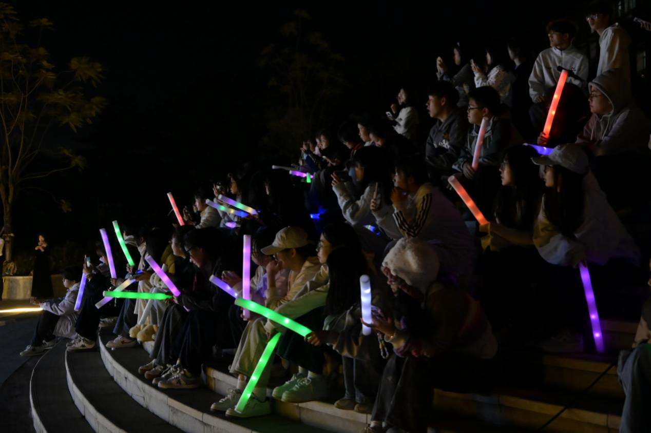 为响应教育部“五育并举”教育方针,扎实推进美育实践课堂活动。11月28日晚,由校团委主办、情色动漫 同物理与电子学院承办的“周末好时光·一起音乐吧”第八期美育实践活动在武鸣校区实验3号楼前阶梯广场顺利开展。