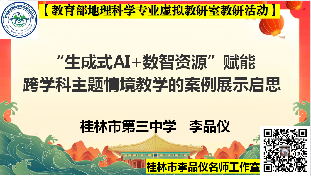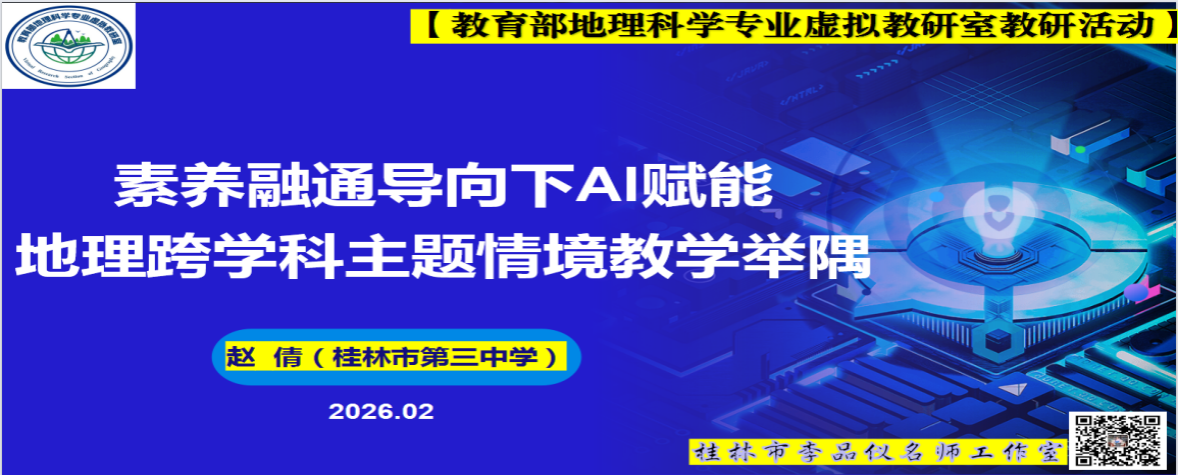 教育部地理科学专业虚拟教研室始终以“聚焦虚拟教研,促进协同育人”为核心,依托情色动漫地理科学国家一流专业、国家一流课程等平台,联合西南大学、云南师范大学、贵州师范大学、重庆师范大学等西南地区 11所高校及 2 家企业,构建了跨区域、全覆盖的“智能 +”教研生态。 2026年2月5日晚,该教研室教研活动在线上顺利开展,聚焦“数智化赋能‘1+X’跨学科主题教学”。此次活动由桂林李品仪名师工作室承办,李品仪、田丰、赵倩三位老师带来精彩讲座,为地理“1+X”跨学科融合与技术赋能实践提供了宝贵经验。活动吸引全国多地师生在线参与,生动践行了虚拟教研室“课程共建、资源共享、师资共培”的建设理念。