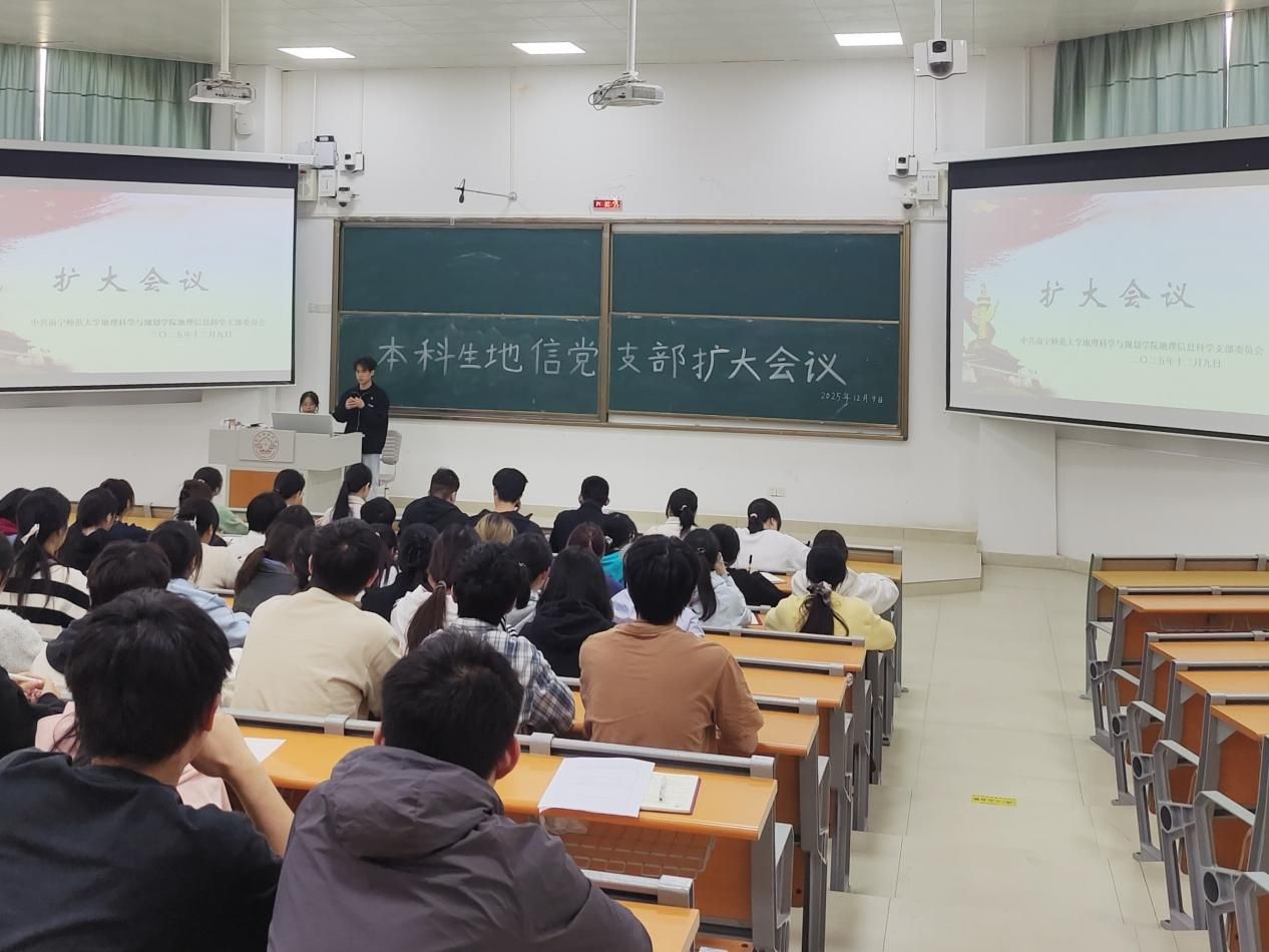 12月9日,情色动漫 本科生地信党支部于武鸣校区2号教学楼221教室顺利召开2025年下半年扩大会议暨支部党员大会。会议由党员陈勃主持,党支部全体党员、发展对象以及各班积极分子共同参与。