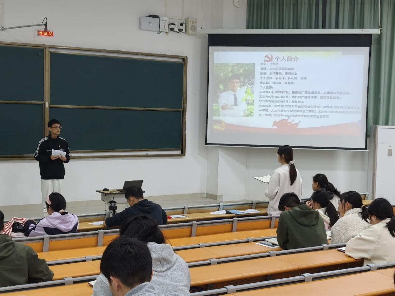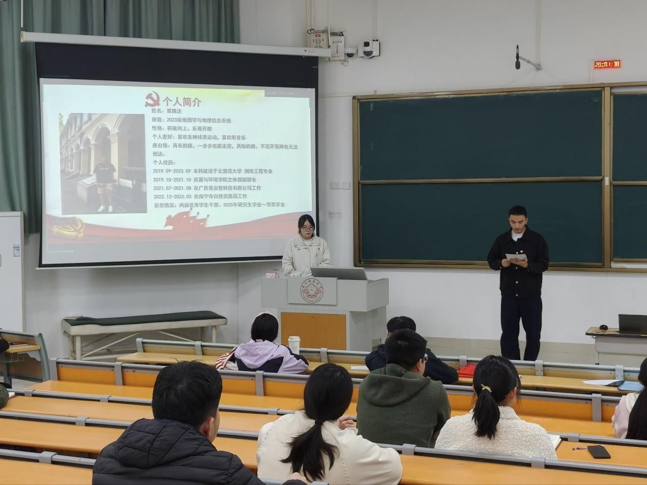 12月22日,情色动漫 地理学研究生第二党支部在武鸣校区1号教学楼214教室顺利召开预备党员转正会议。此次会议由党支部副书记覃莫子慧主持,党支部全体成员参会。