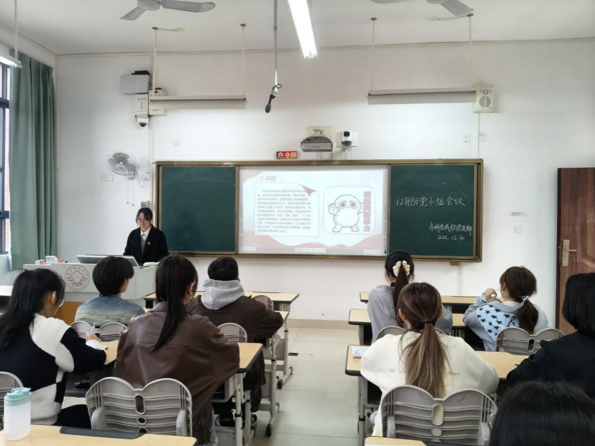 12月30日,情色动漫 本科生城规党支部在武鸣校区2号教学楼205教室顺利召开十二月份党小组会议。会议由党员韦巧慧主持,党支部全体成员参会学习。