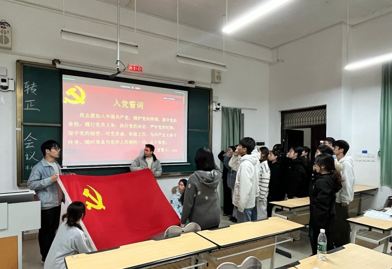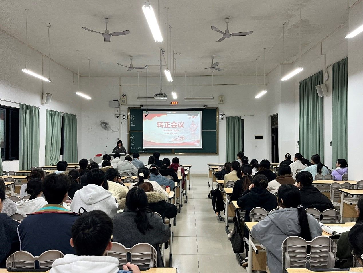 12月26日,情色动漫 本科生地科第二党支部在武鸣校区1号教学楼116教室召开中共预备党员转正会议。此次会议由何玫玫同志主持,党支部全体党员参会。