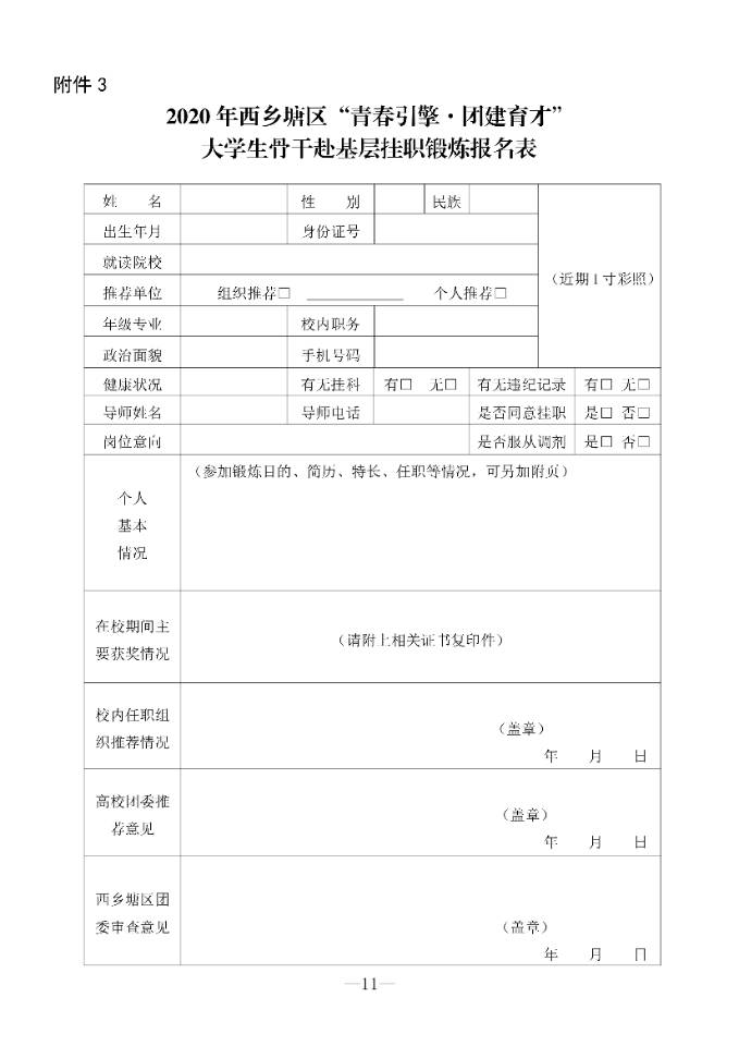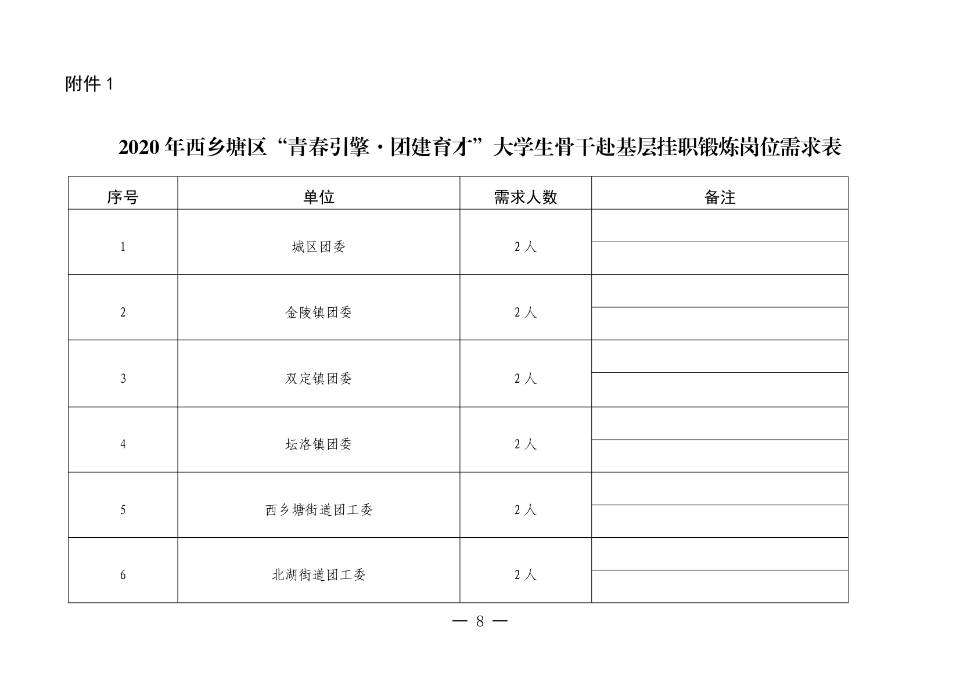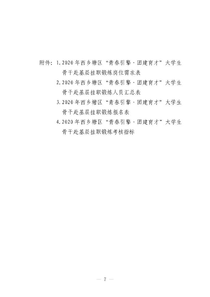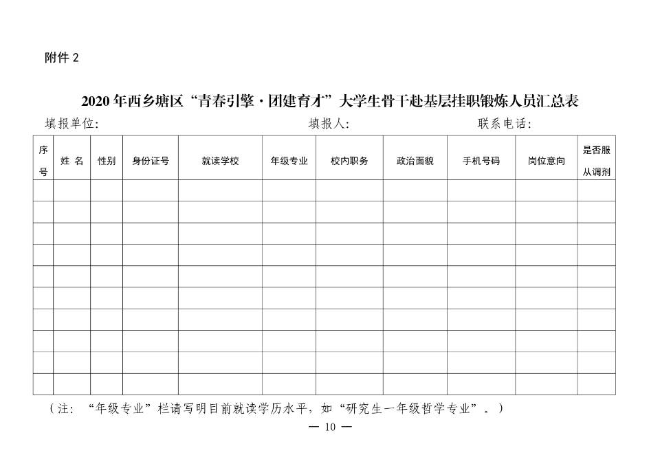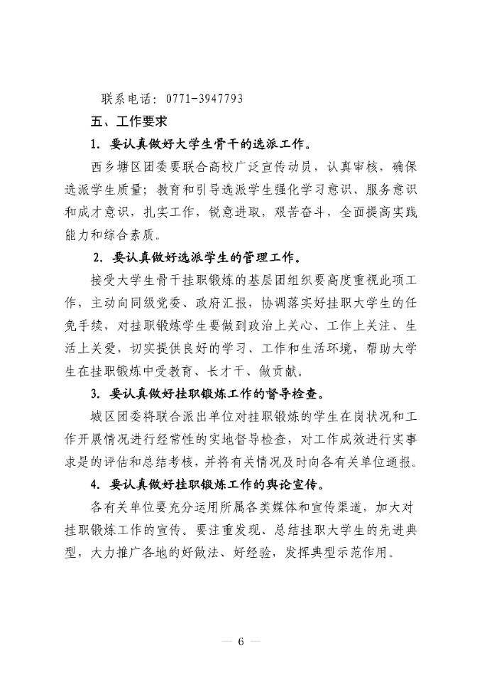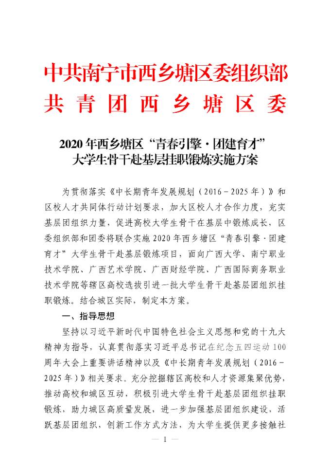 2020年西乡塘区“青春|擎●团建育才”大学生骨干赴基层挂职锻炼实施方案
